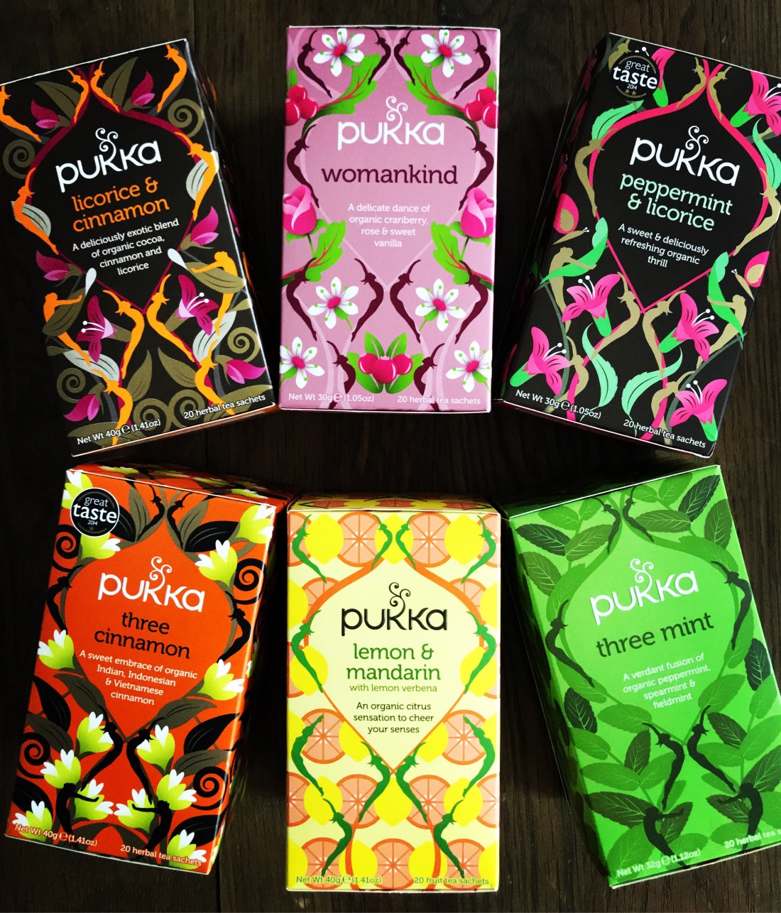 De två sorterna med lakritsrot är perfekta när suget efter godis slår till. Womankind när energi behöver tillföras en dag när systemet känns ur balans. 3 cinnamon och mint – perfekta vinterteer. Liksom lemon & mandarin.